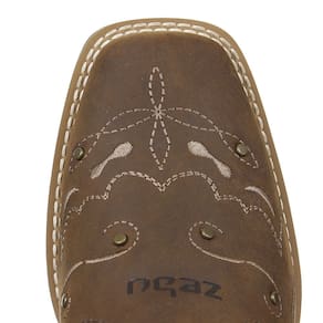 Uma Botina Feminina da marca Zebu, fabricada em couro de alta qualidade destacando a textura única do couro e detalhes rebitados, possui cano curto com elástico lateral acolchoado no interior, bico quadrado, vira costurada e solado de borracha tratorado.