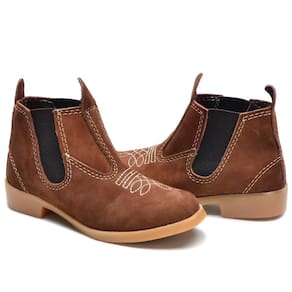 Botina Infantil Masculina Couro Calce Fácil Zíper Resistente - 23 - Marrom Cacau