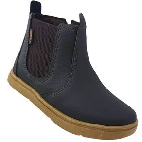 Esse produto é uma botina infantil estilo Chelsea, com fechamento por zíper lateral e elástico na lateral oposta. A sola é emborrachada e antiderrapante, proporcionando conforto e segurança ao caminhar. O cabedal é confeccionado em material sintético com acabamento texturizado que imita couro, conferindo um visual moderno e versátil. Esse modelo é ideal para compor looks casuais e combina facilmente com diversas peças, além de ser prático para calçar e retirar.
