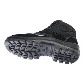 O solado isolante em PU bidensidade, com sistema de absorção de impacto, é injetado diretamente no cabedal, garantindo maior segurança e estabilidade ao caminhar. A biqueira de polipropileno protege os pés contra impactos e quedas de objetos.