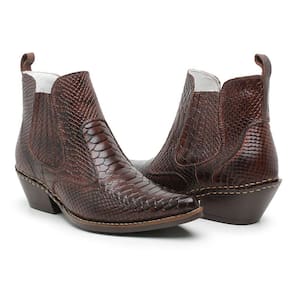 Botina Masculina Bico Fino Anaconda Country JNA SHOES Cobra Café - 44 - Marrom Chocolate