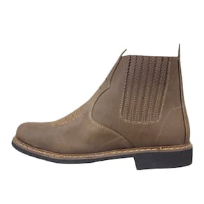 Botina Masculina da marca Cerrado, esta fabricada em couro de alta qualidade, possuindo cano curto com elásticos laterais, assim facilitando o calce e se modelando ao pé do cowboy, um bico redondo com florão costurado e vira com costuras duplas reforçadas nas laterais, não podemos esquecer do solado de borracha com detalhes, gerando assim mais atrito no contato ao solo.