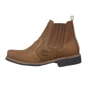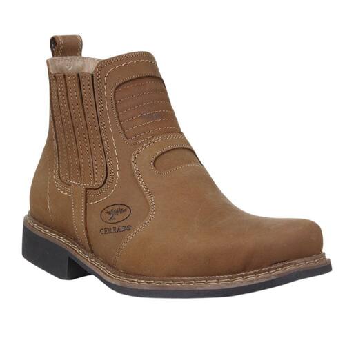 Botina Masculina da marca Cerrado, esta fabricada em couro de alta qualidade, possuindo cano curto com elásticos laterais, assim facilitando o calce e se modelando ao pé do cowboy, um bico redondo e vira com costuras duplas reforçadas nas laterais, não podemos esquecer do solado de borracha com detalhes, gerando assim mais atrito no contato ao solo.