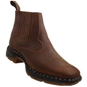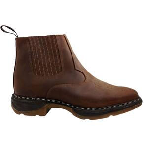 Botina Masculina Country em Couro Costurada à Mão Cano Baixo Solado Ultra Conforto Rodeio Western Oliveira 224