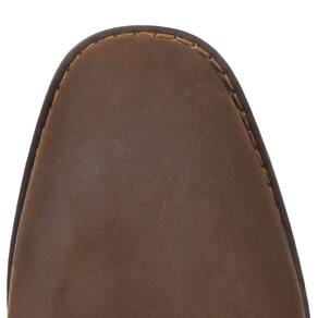 Uma Botina modelo Masculino da marca Zebu, fabricada em couro de alta qualidade destacando a textura única do couro, possui cano curto com elásticos laterais acolchoado no interior, bico redondo, vira costurada e solado de borracha tratorado.