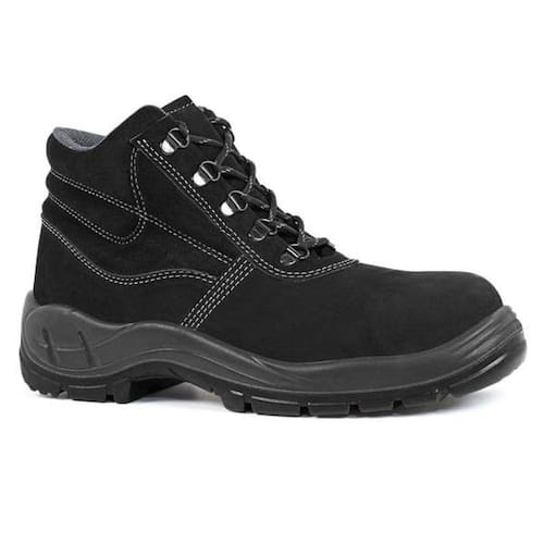 Botina com fechamento por atacador, língua fole e colarinho acolchoado, forro interno na gáspea não tecido e forro do cano em sanitec dublado com manta de não tecido com tratamento antimicrobiano, ilhoses de gancho, solado injeção direta bidensidade bicolor e de uso em diversos ambientes de trabalho.