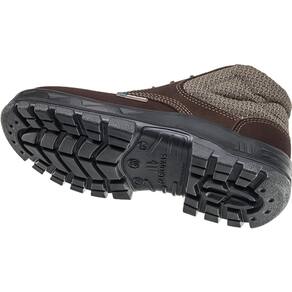 Bota de segurança confeccionada em couro nobuck na cor café, ideal para ambientes administrativos, mecânicos, montadoras e prestadoras de serviços. Com estrutura fibrosa e microporosa, contribui para manter a temperatura interna dos pés. O calçado oferece conforto e proteção com colarinho e lingueta semifole soft acolchoados, fechamento em cadarço marrom e biqueira de composite leve e ultrarresistente. Possui solado isolante em PU bidensidade, injetado diretamente no cabedal, além de forração interna Air Comfort com tratamento antibacteriano.