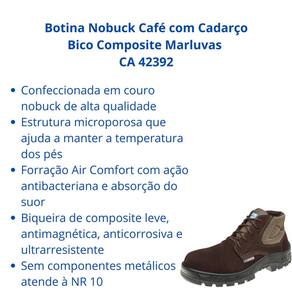 Botina Nobuck Café com Cadarço Bico Composite Marluvas CA 42392 - 38 - Marrom