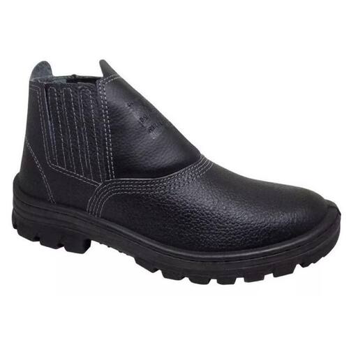 C.A. 17138 Modelo R11 - Cartom Botina confeccionada em couro, fechamento em elástico, com biqueira de aço, solado monodensidade injetado direto ao cabedal e blaqueado. Possui palmilha Antimicróbiana Para proteção dos pés do usuário em locais onde haja riscos de queda de materiais e/ou objetos pesados Cor: Preto Numeração: 41 Marca: Catom