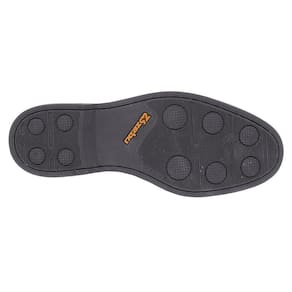 Botina masculina Zebu fabricada em couro na cor Marrom, possui cano curto com elásticos laterais e zíper, bico redondo, vira costurada e solado de borracha.