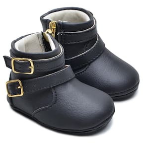 Botinha Feminina Infantil Bebê Tiras Fivelas Confortável - 14 - Preto