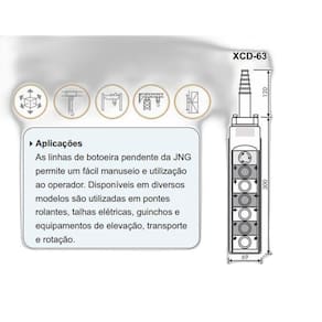 A linha de botoeiras pendentes xcd da jng foi desenvolvida para possibilitar um fácil manuseio de utilização e operação, dando máxima liberdade nos movimentos do operador. Fabricadas conforme as normas internacionais iec/ en.