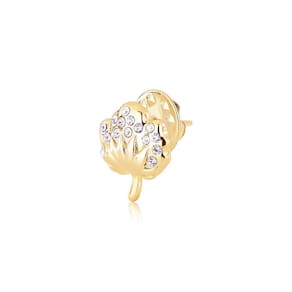 A VL traz uma linha de Broches/ Bottons desenvolvidos para garantir beleza e estilo. O Broche Algodão Grande possui uma linda representação da flor do algodão, com detalhes minimalistas e cristais radiantes, além do revestimento em Ouro.