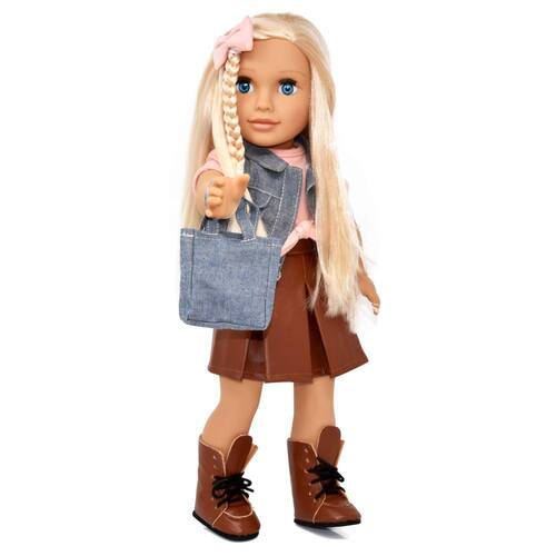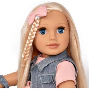 Gift Boutique Boneca feminina de 45,7 cm, boneca moderna com cabelo comprido loiro fino para pentear, olhos azuis, botas de couro, jaqueta jeans, bolsa com laço de cabelo, roupas de boneca e - Conjunto de boneca de 45,7 cm: nossa boneca feminina de 45,7 cm com cabelo loiro fino e olhos azuis com roupa elegante dá vida ao sonho da princesa; possui um laço e blusa rosa; jaqueta jeans e bolsa com saia e botas de couro; perfeito para diversão e brincadeiras imaginativas - Qualidade premium e design realista: feita com características realistas com pele de toque suave e braços e pernas articuláveis; nossa boneca moderna oferece diversão infinita; as crianças vão adorar escovar e pentear seus cabelos longos para criar looks de beleza como uma estilista da vida real - Aprender e brincar interativo: vestir e estilizar nossa boneca princesa ajuda as crianças a desenvolver habilidades motoras e criatividade; estimula a narração de histórias e o aprendizado social; tornando-a uma companheira ideal para meninas em idade escolar e pequenas amigas - Materiais seguros e adequados para crianças: projetado com materiais não tóxicos de alta qualidade; nossa boneca atende a todos os padrões de segurança para crianças e crianças; durável, macio e leve; nosso 45,7 cm é perfeito para mãos pequenas segurarem pose e cuidar; ótimo para encontros - Gift Boutique Para crianças: explore nossos produtos premium; bonecas de princesa da moda para bebês; carrinhos de bebê e acessórios; projetado para trazer alegria para crianças e jovens; um presente surpresa ideal de férias ou aniversário; nossos brinquedos de alta qualidade criam memórias divertidas