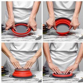 Bacia retrátil em silicone, prático e útil, uma peça que faltava na sua cozinha. Ideal para lavar suas hortaliças, frutas, legumes ou usar onde mais você quiser, etc. Facilidade na hora de guardar, por ser retrátil ocupa menos espaço em seu armário. Pode ir à lava louças. Medidas fechado: 23,6 x 3,5 x 29,5 cm (com hastes). (l x A x C ) Medidas aberto: 23,6 x 8,7 x 29,5 cm (com hastes). (l x A x C ) Peso Aproximado: 195 g Material: Silicone e plástico. Cores disponíveis: azul e Vermelha (vendidas separadamente).