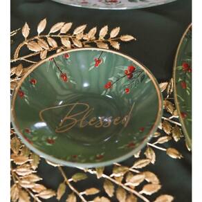 Cor: Verde | Produto: Bowl Blessed verde com borda dourada 16 cm | Utensílio para Armazenamento e Organização: Bowl | Material: Cerâmica | Louças e Artigos para Servir: Aparelho de Jantar