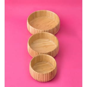 Esse é o Bowl Canelado de Bambu Pequeno. Mantendo o charme do design decorativo que o toque canelado propõe. Feito de bambu, material resistente e com propriedades antibactericidas, este bowl é duravel e higienico, servindo tanto para saladas, pipocas, pâes e frutas como também para itens do cotidiano.