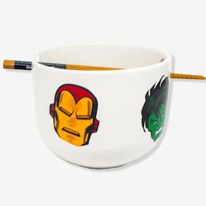 Mesmo sendo um super-herói, você nunca achou um prato que mate a sua fome Você precisa de uma mãozinha na hora de matar a sua fome A gente te ajuda Com esse Bowl o seu almoço e a sua janta ficam muito mais divertidos Com 500ml de capacidade tem muito espaço para encher seu buchinho Não importa o tamanho da sua fome, esse bowl te ajuda a derrotarO produto é produzido em território nacional, feito em porcelana possui detalhes incríveis que vão fazer você se apaixonar Torne as suas refeições mais divertidas Acompanha um par de Hashis feitos em madeira e com acabamento perfeito São 500ml de capacidade para te ajudar a derrotar a sua fome Não importa qual é a comida, esse bowl te acompanha em todas as suas aventuras gastronômicasEspecificações:BowlAltura: 10cm Largura: 13cm Comprimento: 13cm Capacidade: 500ml Material: Porcelana e madeiraHashi: Altura: 20cmCuidados e recomendações de uso:Lavar com água, esponja macia e detergente neutro.Não vai ao micro-ondas, nem a lava-louças.Não utilizar químicos e abrasivos.Choques ou quedas podem trincar ou quebrar o produto, pois trata-se de um produto de Porcelana.