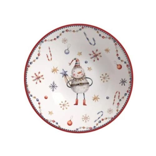 Bowl de Cerâmica Bonecos de Neve Natalino Tigela Sobremesas Caldos Açai Sorvete Celebrações de Natal Greetings 300ml O Bowl de Cerâmica Natalino com Bonecos de Neve é a escolha perfeita para servir sobremesas, caldos, açaí e sorvetes durante as celebrações de Natal. Com um encantador design de bonecos de neve,, esta tigela acrescenta um toque especial à sua mesa de Natal. Celebre a temporada com deliciosas iguarias em grande estilo. Detalhes técnicos:Material: CerâmicaMedidas: Altura 5cm Diâmetro: 16cmCapacidade 300mlLinha: GreetingsCor: Branco, vermelho, azul e dourado Contem: 1 Bowl de Cerâmica Natalino Boneco de Neve Natal 300ml Cuidados:Limpar com pano úmido e detergente neutro;Secar imediatamente a limpeza com pano seco;Não deixar de molho na água (submerso);Vai a lava louças e microondas. Fotos meramente ilustrativas. As cores podem variar de acordo com calibragem de seu monitor ou smartfone