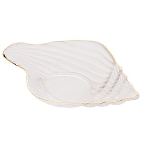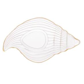 Este lindo bowl de vidro em formato de concha com filete dourado é a peça perfeita para adicionar um toque de elegância e sofisticação à sua mesa. Feito de vidro de alta qualidade, ele é durável e resistente, além de ser fácil de limpar. O design único em forma de concha e o filete dourado dão a este bowl um visual luxuoso que impressionará seus convidados.