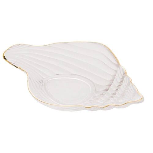 - 01 Bowl de Vidro Concha com Filete Trompete Dourado 20cm x 12cm