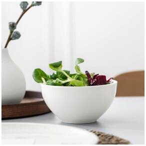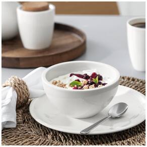 Feita de porcelana premium de alta qualidade, esta tigela é fabricada na Alemanha e possui bordas resistentes a choques e impactos. Além disso, ela é empilhável para economizar espaço e pode ser transportada com facilidade com apenas uma mão. É adequada para catering e pode ser levada à máquina de lavar louça e ao micro-ondas.