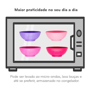 Recomendações de Uso: Use sempre com a supervisão de um adulto, retirar o produto da embalagem, lavar bem antes do primeiro uso com sabão líquido neutro e deixar secar naturalmente, pode ser lavado na lava-louças, pode ser utilizado no congelador e micro-ondas, guardar em local seco, manter longe do alcance do sol, não ferver, não usar em forno ou fogão convencional.