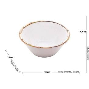 Bowl de Melamina Bambu Asper 15 cm, perfeito para servir cereais, frutas e petiscos. feito em melamina com detalhes tipo bambu, material resistente e leve. Seu design é elegante, trazendo modernidade à mesa e sua estampa acrescenta na decoração da casa. Complete o seu conjunto com os outros itens da linha Bambu Asper