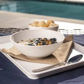 Com capacidade para 500ml, o bowl branco da Coza é a escolha perfeita para servir cereais, iogurtes com frutas, sobremesas ou pequenas porções de saladas. Com design moderno, a cumbuca alia praticidade e sofisticação tanto para o dia a dia quanto para ocasiões especiais. Fabricado em plástico de alta qualidade, é leve, resistente e fácil de manusear. Sua cor neutra facilita a harmonização com diferentes estilos de louças e composições de mesa, trazendo um toque clean e elegante à sua apresentação. Uma peça funcional e charmosa para todas as refeições.