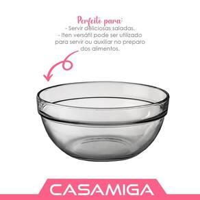 Saladeira ideal para sua cozinha podendo ser utilizada para servir não apenas saladas, mas deliciosos pratos como macarrão, arroz, sobremesas diversas, ou ser usadas para decoração como centro de mesa. Trata-se de peças de vidro transparente com detalhes em auto-relevo que deixará todos encantados por sua beleza, se harmonizando com qualquer decoração