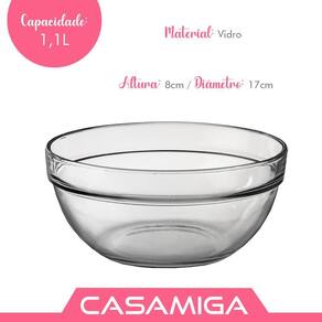 Bowl Saladeira Fruteira Tigela Vidro Transparente 1100Ml
