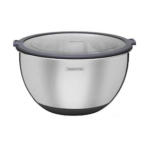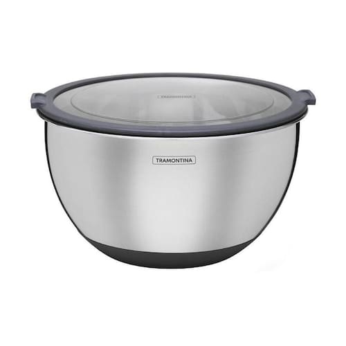 O bowl Tramontina Cucina em aço inox de 5 litros é ideal para quem precisa de espaço e praticidade na cozinha. Produzido em aço inoxidável, é resistente, higiênico e fácil de limpar, preservando os alimentos com . A tampa transparente com vedação hermética mantém o frescor por mais tempo e permite visualizar o conteúdo sem abrir. A base de silicone antiderrapante garante firmeza durante o uso, evitando deslizamentos na bancada. Com design empilhável, facilita a organização e aproveita melhor o espaço nos armários ou na geladeira. Perfeito para preparar, armazenar e servir com eficiência em grandes volumes.