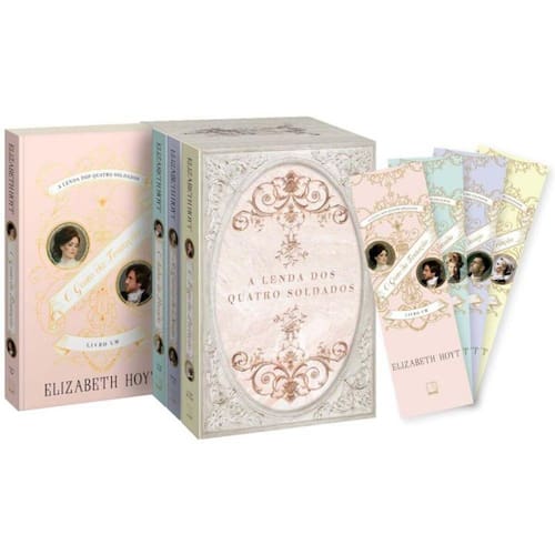 Os quatro livros da série que conquistou leitoras no mundo todo reunidos em um box imperdível com marcadores temáticos! Na tetralogia A Lenda dos Quatro Soldados, Elizabeth Hoyt conduz os leitores por histórias picantes sobre amor e redenção, em que casais lutam contra o desejo de se renderem à paixão. Quatro viscondes, e o que eles têm em comum Um passado sombrio e cheio de feridas que precisam ser curadas. Apresentando diferentes histórias em que amor, ódio e redenção estão entalhados na vida dos personagens, Elizabeth Hoyt explora a sensualidade em uma época em que se condenava a luxúria e o prazer. O gosto da tentação (378 páginas) Lady Emeline Gordon é um exemplo de sofisticação em Londres, por isso é perfeita para ser dama de companhia da irmã mais nova de Samuel Hartley, um bem-sucedido homem de negócios de Boston e ex-soldado das colônias. Mas, apesar de bem-afortunado, Samuel mantém os modos selvagens das colônias onde foi criado. Além disso, é assombrado por uma tragédia: um massacre no qual centenas de seus companheiros morreram, inclusive o irmão de Emeline. Por isso Samuel está em Londres: para obter respostas, não para se apaixonar. Mas isso não significa que seja fácil para ele controlar seu coração. Quando Emeline descobre que Samuel está tentando desvendar o mistério por trás da morte de seu irmão, fica cada vez mais difícil resistir ao que sente por ele. O sabor do pecado (364 páginas) Jasper Renshaw precisa se casar com uma dama e gerar um herdeiro para o título de visconde de Vale e, então, voltar para a vida de libertinagem que sempre levou e que o ajuda a não pensar no passado. Mas encontrar amantes é mais fácil que a mulher ideal, e, depois de ser abandonado pela segunda noiva em seis meses, ele recebe uma proposta irrecusável: Melisande Fleming se oferece para ser a futura viscondessa de Vale. Aos 28 anos e ainda morando com o irmão, Melisande busca a independência de um casamento. Mas ela guarda um segredo: ela ama o visconde e está disposta a viver um casamento sem amor só para ficar ao lado dele. As garras do desejo (336 páginas) A vida de Sir Alistair Munroe era estudar, catalogar e publicar livros sobre a fauna e a flora. Porém, depois de passar por traumas físicos e emocionais durante uma guerra na América, ele resolve se isolar em seu castelo na Escócia. No entanto, quando uma bela e misteriosa mulher bate à sua porta, os sentimentos que tanto reprimia vêm à tona. Famosa pela beleza, Helen Fitzwilliam viveu os últimos anos desfrutando do luxo da alta sociedade. Disposta a fugir dos erros do passado, aceita trabalhar em um castelo como governanta em troca de abrigo. Helen está determinada a recomeçar sua vida e não vai deixar que nada a afaste de seu propósito. Alistair logo descobre que Helen é muito mais que uma mulher bonita. Mas, quando começa a acreditar no amor verdadeiro, o passado secreto de Helen ameaça separá-los. O fogo da perdição (336 páginas) Reynaud St. Aubyn passou sete anos em um cativeiro. Após conquistar sua tão sonhada liberdade, ele vai atrás de seu título de direito. Mas o que todos veem é um homem maltrapilho e delirante, bem diferente do cavalheiro que o visconde costumava ser. Beatrice Corning, sobrinha do atual conde de Blanchard, é uma dama inglesa. Mas ela tem um segredo: nenhum homem mexe tanto com ela quanto o jovem dos quadros da casa de seu tio. Então, de repente, aquele homem está ali, seduzindo-a. Apenas Beatrice consegue enxergar o nobre rapaz sob aquela armadura selvagem. Reynaud sente-se atraído pela adorável dama, mas não sabe se pode confiar nela. Afinal, ela é a protegida do homem que tomou seu título e sua herança. Será o amor de Beatrice capaz de domar um homem disposto a fazer de tudo para reconquistar o que é seu por direito