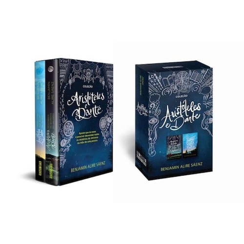 Box exclusivo com os livros Aristóteles e Dante descobrem os segredos do Universo e Aristóteles e Dante mergulham nas águas do mundo . Dante sabe nadar. Ari não. Dante é articulado e confiante. Ari tem dificuldade com as palavras e duvida de si mesmo. Dante é apaixonado por poesia e arte. Ari se perde em pensamentos sobre seu irmão mais velho, que está na prisão. Mas quando Ari e Dante se encontram, tudo muda — e o que começa com uma amizade intensa, logo se transforma em um sentimento que vai mudar a vida dos dois garotos para sempre. Em Aristóteles e Dante descobrem os segredos do Universo e Aristóteles e Dante mergulham nas águas do mundo acompanhamos, por meio de uma prosa poética e delicada, o desenvolvimento do relacionamento de Ari e Dante, o amadurecimento de cada um deles nos Estados Unidos dos anos 1980 e seu percurso até a vida adulta — que, por mais difícil que seja, é cheio de amor e esperança.