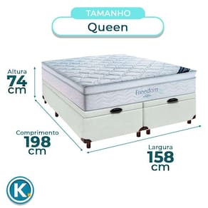 Modelo: Freedom Marca: Ortobom Tamanho: Queen Tecido: Poliéster Largura: 158cm Comprimento: 198cm Altura: 32cm Suporte de Peso: 150Kg Garantia: 12 Meses Tecnologia No Turn (não necessita ser virado)