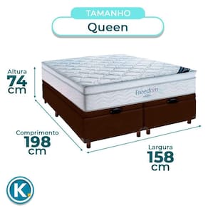 Modelo: Freedom Marca: Ortobom Tamanho: Queen Tecido: Poliéster Largura: 158cm Comprimento: 198cm Altura: 32cm Suporte de Peso: 150Kg Garantia: 12 Meses Tecnologia No Turn (não necessita ser virado)