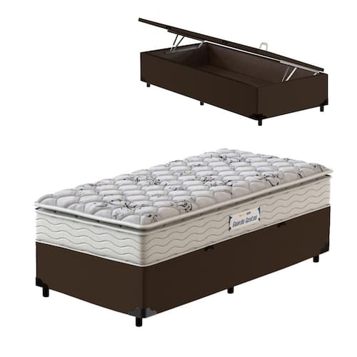 Colchão: Espuma/Tecido Poliéster; Base Baú: Madeira tratada, Revestimento Sintético.Vendido e entregue por Lucas Colchões