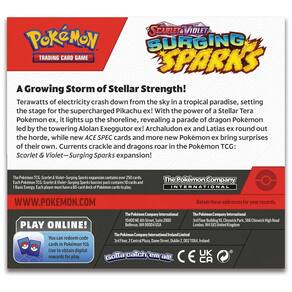 A box booster Pokémon TCG: Scarlet & Violet – Surging Sparks reúne 36 pacotes de booster da expansão Surging Sparks, indicada para jogadores e colecionadores que desejam ampliar rapidamente sua coleção com cartas da série Scarlet & Violet. Cada booster traz cartas aleatórias, incluindo Pokémon, Treinadores e Energias, permitindo montar e aprimorar baralhos temáticos ou competitivos. ? A expansão Surging Sparks contém mais de 250 cartas, incluindo mais de uma dúzia de Pokémon ex, novos cards ACE SPEC e mais de 50 cartas de Pokémon e Treinadores com ilustrações especiais, o que torna a coleção atrativa tanto para uso em jogo quanto para exposição em pastas e vitrines. O produto é recomendado para jogadores a partir de 8 anos e segue o padrão oficial de cartas do Pokémon TCG. ? Ficha Técnica