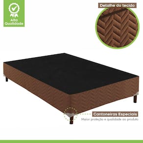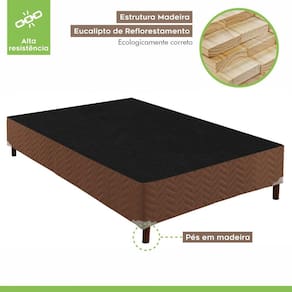 Para você dormir bem e ainda deixar o quarto com um visual impecável, conte com a Base para Cama Box Samambaia! Linda, ela é fabricada com materiais de ótima qualidade e excelente resistência! Curtiu, né? Ela é perfeita para acomodar o seu colchão para que você desfrute de uma deliciosa noite de sono! Sistema de Montagem: Apenas enrroscar os pés (manual) Acompanha Cama Auxiliar: Não Ambiente Principal: Quarto Cantoneiras: Sim Complexidade da Montagem: Baixa: pode ser montado por uma pessoa sozinha Cor: Rustico Cerejeira Cor do Produto: Rustico Cerejeira Itens Inclusos: Base Box, Kit Pés e Manual de Montagem Material da Estrutura: Madeira de Eucalipto Material dos Pés: Madeira Necessita Montagem: Sim Origem do Produto: Nacional Permite a Utilização de Cama Auxiliar: Não Peso: 48.65 Possui Baú: Não Recomendações de Uso, Manutenção e Limpeza: Recomendações indicadas no manual de garantia e uso Resistente à Chuva: Não Revestimento da Base Box: Tecido Plano Marca: Paropas by Ecosono Ean: 7909903199770