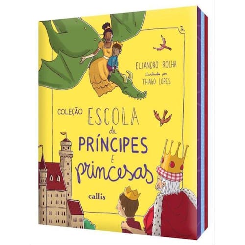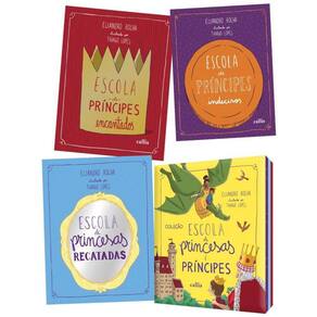 Conheça o mundo encantado de Eliandro Rocha. Os contos de fadas estão cheios de príncipes que sabem cavalgar, brigar com um dragão e manejar bem a espada e de princesas que têm longas tranças ou usam sapatinhos de cristal. Mas o que que será que acontece se um deles não quer seguir esse caminho? Neste kit, repleto de significado, o leitor vai conhecer Sofia, Valentino e Frederico; e vai aprender com eles a importância de ter coragem de escrever a sua própria história. Vem com os livros: Escola de príncipes encantados, Escola de princesas recatadas, Escola de príncipes indecisos.