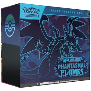 O Box de Treinador Elite Pokémon TCG: Mega Evolution — Phantasmal Flames é um conjunto estruturado para montagem e organização de baralhos da expansão Mega Evolution — Phantasmal Flames. Cada unidade inclui 9 boosters Pokémon TCG: Mega Evolution — Phantasmal Flames, com cartas em inglês utilizadas em partidas conforme as regras oficiais do jogo de cartas Pokémon.