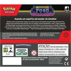 A expansão Megaevolução - Fogo Fantasmagorico do Pokémon Estampas Ilustradas contém mais de 120 Cartas. Cada pacote da série Megaevolução do Pokémon Estampas Ilustradas contém 6 cartas e 1 carta-código para o Pokémon Estampas Ilustradas Live.