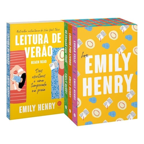 As quatro comédias românticas deliciosas de Emily Henry reunidas pela primeira vez em um charmoso box que vai deixar os fãs apaixonados. Leitura de verão Em Leitura de verão, uma escritora de romances que não acredita mais no amor e um escritor literário sufocado pela rotina se envolvem em um desafio que pode subverter tudo o que eles sempre pensaram sobre o que é ser feliz. Augustus Everett é um aclamado autor de ficção literária. January Andrews escreve romances best-seller. Eles definitivamente são polos opostos. A única coisa que têm em comum é que, durante três meses, vão morar em casas de praia vizinhas, ambos falidos e paralisados por um bloqueio criativo. Cada um vai finalizar um livro e ninguém vai se apaixonar. Será? De férias com você Dois melhores amigos. Dez viagens de verão. Uma última chance de se apaixonar. Poppy e Alex. Alex e Poppy. Eles não têm nada em comum. Ela é uma garota rebelde; ele usa calça cáqui. Ela tem um desejo insaciável de viajar; ele prefere ficar em casa lendo um livro. E de alguma forma, desde uma fatídica carona na faculdade há muitos anos, os dois são melhores amigos. Até dois anos atrás... quando eles estragaram tudo. E, desde então, não se falaram mais. Agora Poppy tem uma semana para consertar as coisas. Será que algo mais ainda pode dar errado? Loucos por livros Loucos por livros vai aquecer o coração dos leitores e mostrar um pouquinho dos bastidores do mercado editorial. Os livros são a vida de Nora Stephens — e ela definitivamente não é o tipo de heroína dos livros. Não é a garota impulsiva, nem a descontraída, muito menos a imagem da meiguice. E é por isso que Nora concorda em passar o verão em Sunshine Falls, Carolina do Norte, quando Libby implora por uma viagem de irmãs. Mas, em vez de piqueniques no campo ou encontros inesperados com um belo médico, ou quem sabe com um barman musculoso, Nora esbarra em Charlie Lastra, um editor ranzinza que ela conhece de Nova York. Seria um daqueles encontros fofos se não fosse o fato de que eles já se viram antes — e nunca foi fofo. Mas, à medida que se veem juntos repetidas vezes, o que eles descobrem pode acabar por deslindar as histórias cuidadosamente elaboradas que eles escreveram sobre si mesmos. Lugar feliz Lugar feliz traz a história de um casal que ainda não sabe se quer ficar junto ou separado. Harriet e Wyn são o casal dos sonhos desde a faculdade. Só que agora — por razões sobre as quais não conversam — eles não combinam mais. Faz cinco meses que Harriet e Wyn terminaram, e ainda não contaram aos seus melhores amigos. Assim, continuam dividindo o maior quarto da casa no Maine onde sua turma de amigos passa férias há uma década. Porque a casa no Maine está à venda, e esta é a última semana que os amigos terão para ficar juntos no paraíso. Depois de anos apaixonados, não deve ser tão difícil fingir por apenas uma semana, na frente das pessoas que conhecem os dois como ninguém… certo? “Uma das minhas autoras favoritas.” — Colleen Hoover “Emily Henry é a nova autora que vou comprar sem nem pensar.” — Jodi Picoult “Mais um hit da campeã. A mulher não erra.” — Taylor Jenkins Reid “A prosa é fácil; os personagens são encantadores. A única desvantagem é chegar ao fim.” — V. E. Schwab