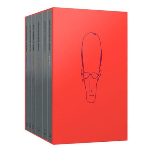 Os cinco clássicos essenciais de Carlos Drummond de Andrade, em box exclusivo, com projeto gráfico de Mayumi Okyama e ensaio inédito do poeta Tarso de Melo. Para celebrar um dos maiores nomes da poesia moderna brasileira, foram reunidos em um box de luxo os 5 clássicos essenciais de Carlos Drummond de Andrade: Alguma poesia , Sentimento do mundo, José & Novos poemas , A rosa do povo e Claro enigma . Com projeto gráfico assinado pela designer Mayumi Okuyama, os livros têm capa dura e pintura trilateral. De presente, o box traz um livreto, Vida e obra , reunindo um ensaio inédito do poeta Tarso de Melo e a cronologia completa de vida e obra de Drummond; e 6 cards com diferentes autocaricaturas e versos de Drummond. Alguma poesia (120 páginas) “No meio do caminho”, “Poema de sete faces” e “Quadrilha” estão entre os poemas mais conhecidos de Drummond, e fazem parte de Alguma poesia (1930), seu livro de estreia. Aqui, mais do que em qualquer outra de suas obras, transparece a influência da Semana de Arte Moderna de 1922 e, sobretudo, de Mário de Andrade, com quem Drummond manteve farta correspondência literária. Sentimento do mundo (80 páginas) Sentimento do mundo (1940) é o terceiro livro de poemas de Drummond, mas o primeiro escrito após a mudança para o Rio de Janeiro, então capital do país. O poema-título registra a abertura do poeta para uma visão mais ampla da humanidade. Nos demais poemas, há também uma atitude política mais participativa e empenhada na transformação da realidade. José & Novos poemas (88 páginas) Com “José”, poema que dá título a um dos livros (de 1942) deste volume, Drummond demoliu a barreira entre alta e baixa cultura. O verso inicial “E agora, José?” ganhou diversas interpretações e conotações na boca do povo, “viralizando” por meio de citações que vão da literatura à propaganda. Já com Novos poemas (1948), o poeta escreve um capítulo essencial da história da poesia brasileira, equilibrando-se entre o sentido trágico da vida e a esperança. A rosa do povo (209 páginas) O contexto histórico em que este livro foi produzido e lançado ajuda a dar ainda mais sentido aos 55 poemas que compõem essa obra-prima, publicada em 1945. Escritos sob o impacto da Segunda Guerra Mundial e da ditadura do Estado Novo no Brasil, os versos trazem grande carga “politizada” e a fé inabalável do poeta no ofício da escrita. Claro enigma (136 páginas) Em Claro enigma (1951), os recursos da poesia moderna passam a conviver com formas fixas, entre elas os sonetos, e com esquemas de rimas e metros clássicos, como a redondilha, o decassílabo e o alexandrino. E, como a contradição dos termos no título do livro sugere, Claro enigma demonstra que a maturidade, longe de representar um ponto de vista fixo e seguro, recoloca em outro patamar as inquietações e angústias da juventude. Vida e obra (104 páginas) Livreto exclusivo do box reunindo um ensaio inédito de Tarso de Melo sobre as cinco obras essenciais e uma cronologia completa de vida e obra do poeta.
