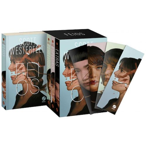 Reunida em um box e com brindes e capas estilizadas, a emblemática série Feios transporta o leitor para um mundo distópico movido pela busca por perfeição e fama a qualquer custo. Mas será que o futuro imaginado por Scott Westerfeld está tão distante assim dos dias atuais? Em uma realidade pós-apocalíptica, todo mundo nasce feio. E Tally Youngblood não vê a hora de completar dezesseis anos e finalmente ganhar a cirurgia para se tornar a versão perfeita de si mesma — com rosto, pele e osso s reconstruídos. Mas, enquanto conta os dias para o tão esperado momento, ela descobre que os rebeldes podem estar mais perto do que imagina, tentando derrubar o sistema do qual ela tanto deseja fazer parte. No decorrer dos três primeiros volumes da série — Feios, Perfeitos e Especiais —, Tally se verá dividida entre o que sempre almejou e verdades recém-descobertas sobre o mundo dos perfeitos. Em meio a aventuras, anseios e ações insurgentes, ela terá que aprender a lidar com as consequências d e suas próprias decisões. Uma geração depois, o mundo continua sendo desafiador. Desta vez, no quarto volume, Extras, Aya Fuse vive em uma sociedade cuja única maneira de ser relevante é se tornar famoso da noite para o dia. Porém, ao tentar alcançar o status de celebridade, ela acaba se vendo diante de um dilema crucial: vale tudo pela fama? Instigante, a série Feios levanta temas que, mesmo após quase duas décadas de lançamento, ainda têm tudo a ver com a sociedade contemporânea, principalment e ao abordar a grande importância atribuída à beleza e a consequente busca pelo corpo e rostos perfeitos, sem deixar de tratar de questões relacionadas à individualidade, à amizade e aos mecanismos de controle social. “Uma série extraordinária.” – Ki rkus Reviews Ean: 9786559813612