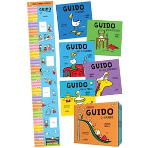 Sucesso em mais de 40 países, esse simpático e atrapalhado ganso é garantia de uma ótima leitura. Dentro desta caixinha, você encontrará cinco livros do Guido e da Sofia e também um medidor de altura muito especial! Guido e Sofia são melhores amigos. Ela sempre brincava sozinha e isso a deixava bem triste. Mas, um dia, em um passeio no parque, ela conheceu o Guido, um ganso muito esperto e simpático. Desde então, a diversão não teve mais fim.