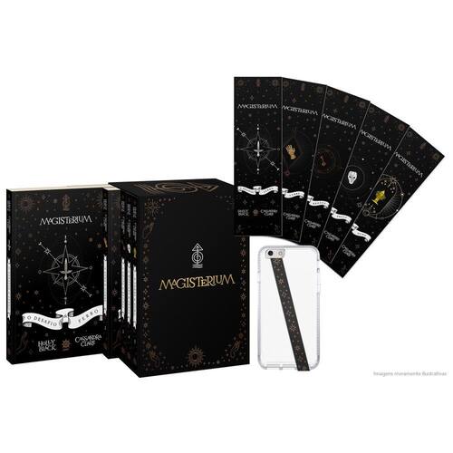 Holly Black e Cassandra Clare, duas das maiores autoras de fantasia da atualidade, trazem uma incrível nova série que desafia tudo o que você conhece sobre o mundo da magia.Os 5 livros de Magisterium pela primeira vez reunidos em uma caixa rígida e com novas capas, feitas exclusivamente para o box. Acompanha 5 marcadores com impressão metálica em cores diferentes, combinando com a capa e o título de cada livro, e 1 smartsafe! Duas das maiores autoras young adults do mundo escrevendo juntas sobre um mundo repleto de magia, aventuras e reviravoltas chocantes. Cassandra Clare, cujos livros dos Caçadores de Sombras já venderam mais de 60 milhões exemplares no mundo inteiro, e Holly Black, renomada autora da série best-seller O Povo do Ar, trazem vida ao Magisterium, uma escola de magia diferente de tudo que você já achou saber o universo da fantasia.A série acompanha a história de Callum Hunt e seus anos passados dentro do Magisterium, um lugar que sempre foi ensinado a temer e a odiar. Enquanto aprende mais sobre os seus poderes, Call precisa colocar à prova todo o seu conhecimento para sobreviver.Criado em colaboração pelas fantásticas mentes de Cassandra Clare e Holly Black, as autoras oferecem a você as chaves das portas do Magisterium, um universo mágico e inexplorado. Vistam as suas capas de magos, tomem cuidado para não serem Dominados pelo Caos e boa sorte! O Magisterium lhes oferece as boas-vindas.Reunindo pela primeira vez os cinco livros da série, o Box Magisterium contém O desafio de ferro, A luva de cobre, A chave de bronze, A máscara de prata e A torre de ouro em edições ilustradas e com capas inéditas. ?Ambientado em um Estados Unidos em que a magia existe, a série Magisterium combina os talentos de Black e Clare em uma empolgante história de amadurecimento que reúne os conhecidos elementos da fantasia enquanto deixa os leitores sem saber o que vai acontecer em seguida.? ? Publisher?s Weekly