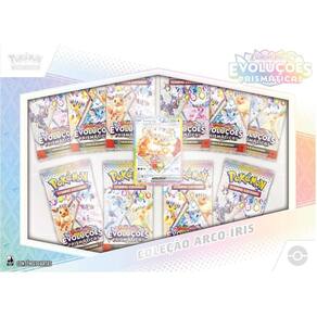 A Coleção Arco-Íris de Escarlate e Violeta - Evoluções Prismáticas do Pokémon Estampas Ilustradas contém: • 1 carta holográfica promocional com arte expandida de Eevee ex!• 10 pacotes de booster de Escarlate e Violeta - Evoluções Prismáticas do Pokémon Estampas Ilustradas! • 1 carta codificada para o Pokémon Estampas Ilustradas LiveContém 61 unidades de cartas no formato 63mm x 88mm