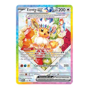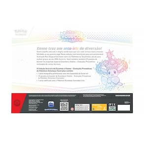 Eevee espalha amizade e alegria aonde quer que vá e com certeza trará a mesma felicidade ao seu próximo jogo! Nesta coleção, você encontrará uma carta promocional Ilustração Rara Especial de Eevee como um Pokémon ex Tera Estelar, pronto para evoluir graças ao seu DNA Arco-íris. Você também receberá 10 pacotes de booster da expansão especial Escarlate e Violeta - Evoluções Prismáticas recheados de cartas incríveis.