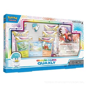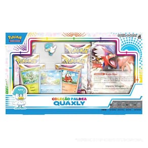 Box pokemon coleção paldea quaxly - 003 40 cartas copag Box pokemon coleção paldea quaxly - 003 40 cartas copag Coleção paldea Estampas ilustrada Comece uma nova jornada com sprigatito e seus amigos Prepare-se para uma aventura totalmente nova na região de paldea com o pokémon estampas ilustradas os parceiros iniciais sprigatito, fuecoco e quaxly juntam-se à sua coleção como cartas holográficas promocionais, e o broche brilhante de quaxly permite que você exiba o pokémon patinho onde quer que você vá. Descubra muito mais com pacotes de booster e uma carta extragrande de um dos pokémon lendários, koraidon ou miraidon, como um poderoso pokémon ex Esta coleção paldea do pokémon estampas ilustradas contém: 3 cartas holográficas promocionais de sprigatito, fuecoco e quaxly1 carta holográfica extragrande de koraidon ex ou miraidon ex1 broche de colecionador de quaxly6 pacotes de booster do pokémon estampas ilustradas1 carta codificada para pokémon estampas ilustradas live. Cada pacote de booster do pokémon estampas ilustradas contém 6 cartas. Cada produto pode conter pacotes de booster de diferentes expansões. Cada jogador deve ter um baralho com 60 cartas de pokémon para jogar. Expanda a sua coleção de cartas de pokémon estampas ilustradas com pacotes de booster. Copag da amazônia s/a.Cnpj: 04.664.637/0001-33 Atenção não recomendável para crianças menos de 3 três anos por poder gerar parte s pequena s que pode m ser engolida s ou aspirada s . Segurança inmetro - instituto nacional innac - ocp 0061Registro 008 140/2021 Contém 39 unidades de cartas no formato 63mm x 88mm e 1 unidade de carta no formato 133mm x 187mm.Validade indeterminada.Composição: papel, plástico e metal. Fabricado por copag sob licensa da pokémon licenciamento de produtos brasil ltda. Fabricado no brasil. Broche produzido na china.